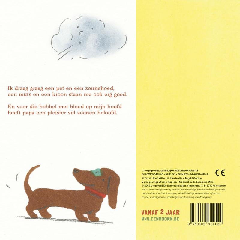 - Een vrolijk kartonboekje met versjes - Over soorten hoedjes Kleurrijk versjesboek om samen met je peuter van te genieten. Ik draag graag een pet en een zonnehoed, een muts en een kroon staan me ook erg goed. En voor die bobbel met bloed op mijn hoofd, heeft papa een pleister vol zoenen beloofd.