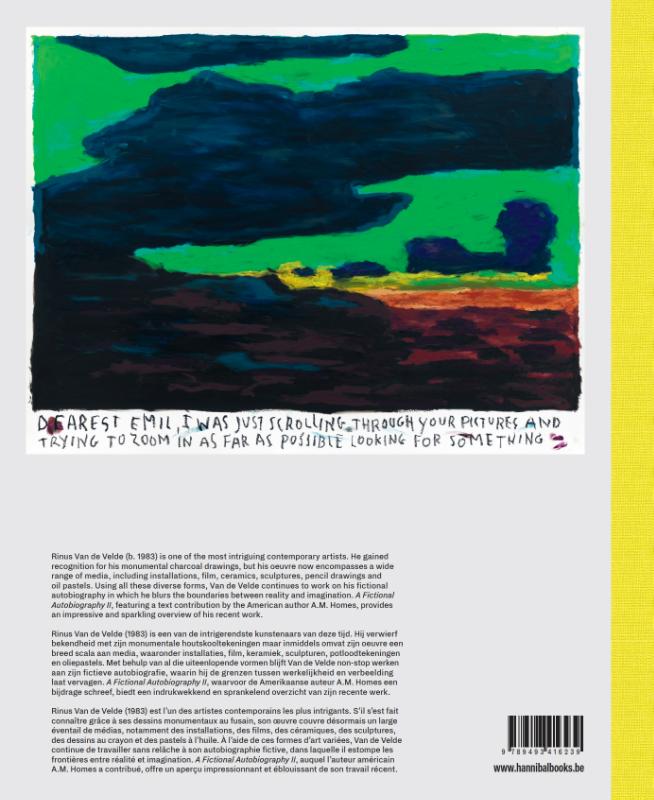 Rinus Van de Velde (b. 1983) is one of the most intriguing contemporary artists. He gained recognition for his monumental charcoal drawings, but his oeuvre now encompasses a wide range of media, including installations, film, ceramics, sculptures, pencil drawings and oil pastels. Using all these diverse forms, Van de Velde continues to work on his fictional autobiography in which he blurs the boundaries between reality and imagination. A Fictional Autobiography II, featuring a text contribution by the American author A.M. Homes, provides an impressive and sparkling overview of his recent work. Rinus Van de Velde (1983) is een van de intrigerendste kunstenaars van deze tijd. Hij verwierf bekendheid met zijn monumentale houtskooltekeningen maar inmiddels omvat zijn oeuvre een breed scala aan media, waaronder installaties, film, keramiek, sculpturen, potloodtekeningen en oliepastels. Met behulp van al die uiteenlopende vormen blijft Van de Velde non-stop werken aan zijn fictieve autobiografie, waarin hij de grenzen tussen werkelijkheid en verbeelding laat vervagen. A Fictional Autobiography II, waarvoor de Amerikaanse auteur A.M. Homes een bijdrage schreef, biedt een indrukwekkend en sprankelend overzicht van zijn recente werk. Rinus Van de Velde (1983) est l’un des artistes contemporains les plus intrigants. S’il s’est fait connaître grâce à ses dessins monumentaux au fusain, son œuvre couvre désormais un large éventail de médias, notamment des installations, des films, des céramiques, des sculptures, des dessins au crayon et des pastels à l’huile. À l’aide de ces formes d’art variées, Van de Velde continue de travailler sans relâche à son autobiographie fictive, dans laquelle il estompe les frontières entre réalité et imagination. A Fictional Autobiography II, auquel l’auteur américain A.M. Homes a contribué, offre un aperçu impressionnant et éblouissant de son travail récent.