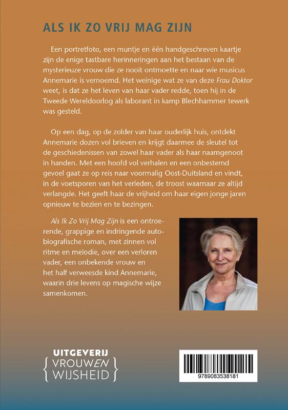 Een portretfoto, een muntje en één handgeschreven kaartje zijn de enige tastbare herinneringen aan het bestaan van de mysterieuze vrouw die ze nooit ontmoette en naar wie musicus Annemarie is vernoemd. Het weinige wat ze van deze Frau Doktor weet, is dat ze het leven van haar vader redde, toen hij in de tweede wereldoorlog als laborant in kamp Blechhammer tewerk was gesteld. Op een dag, op de zolder van haar ouderlijk huis, ontdekt Annemarie een doos vol brieven en krijgt daarmee de sleutel tot de verledens van zowel haar vader als haar naamgenoot in handen. Met een hoofd vol verhalen en een onbestemd gevoel gaat ze op reis naar voormalig Oost-Duitsland en vindt, in de voetsporen van het verleden, de troost waarnaar ze altijd verlangde. Het geeft haar de vrijheid om haar eigen jonge jaren opnieuw te bezien en te bezingen. Als Ik Zo Vrij Mag Zijn is een ontroerende, grappige en indringende autobiografische roman, met zinnen vol ritme en melodie, over een verloren vader, een onbekende vrouw en het half verweesde kind Annemarie, waarin drie levens op magische wijze samenkomen.