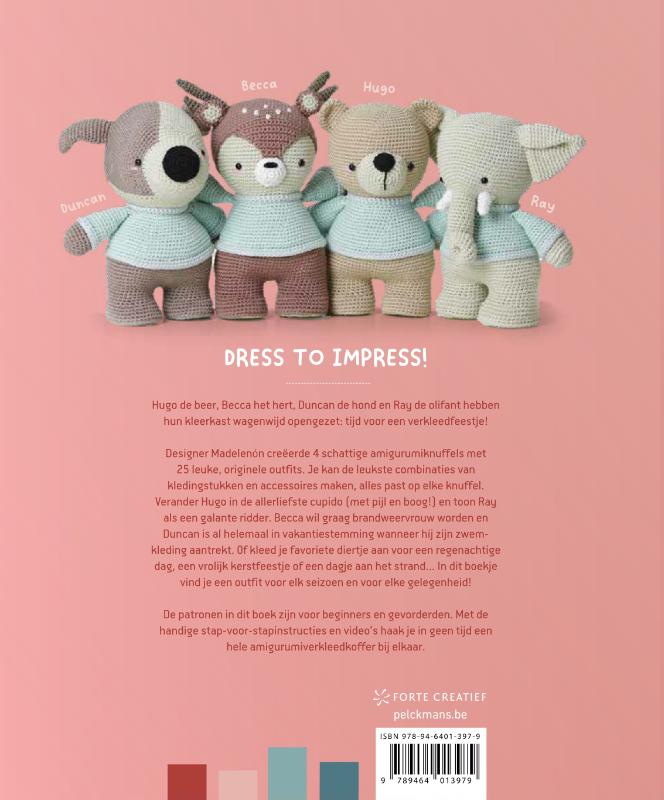 Amigurumi verkleedfeestjes: 4 vrolijke knuffels en 25 outfits om te haken Hugo de Beer, Becca het Rendier, Duncan de Hond en Ray de Olifant hebben hun kledingkast wagenwijd opengezet: tijd voor een amigurumi verkleedfeestje! Designer Madelenon creëerde 4 schattige amigurumiknuffels met 25 leuke en originele outfits. Zo is Hugo de allerliefste cupido (met pijl en boog!) en Ray een echte stoere ridder. Brandweervrouw Becca is klaar om de brand te blussen, terwijl Duncan al helemaal in vakantiestemming is wanneer hij zijn zwemkleren aantrekt. Ze zijn enorm leuk om te haken, en je bezorgt kinderen eindeloos speel- en verkleedplezier! In dit boekje vind je outfits voor elk seizoen en elke gelegenheid. De patronen van Madelenon zijn geschikt voor beginners en gevorderden. Met de handige stap-voorstapbeschrijving en de video-instructies haak je zo een hele amigurumiverkleedkoffer bij elkaar. Madelenon is een populaire Argentijnse ontwerpster van amigurumipatronen. Meer van haar patronen vind je op www.madelenon.com.