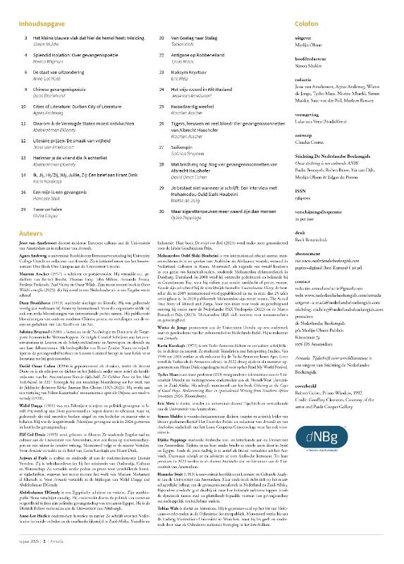 Met ● Simon Mulder ● Menno Wigman ● Anne-Lot Hoek ● Daan Bronkhorst ● Agnes Andeweg ● Abdelrahman ElGendy ● Jesse van Amelsvoort ● Karin Karakaşlı ● Hanneke Stuit ● Walid Daqqa ● Tobias Wals ● Tycho Maas ● Eric Metz ● Maarten Asscher ● Albrecht Haushofer ● Sabrina Bruyneel ● David Omar Cohen ● Mohamedou Ould Slahi Houbeini ● Wietse de Jong ● Djûke Poppinga
