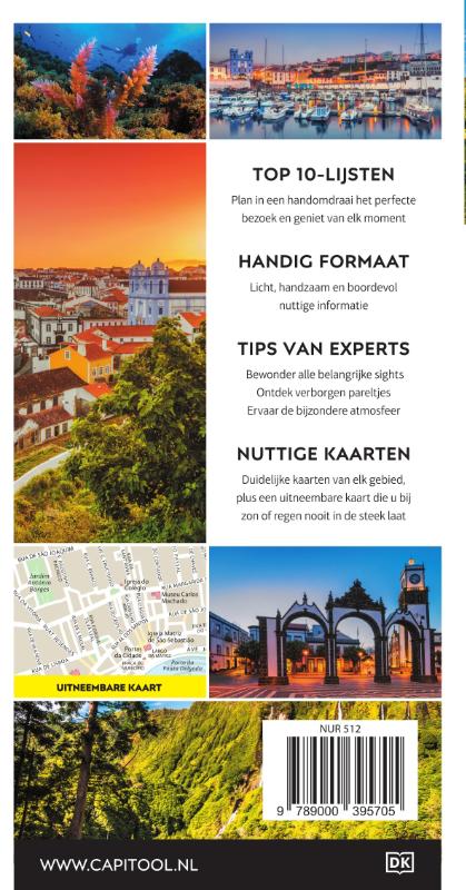 Top 10 Azoren laat het beste van de Azoren zien ✔ Top 10 van onder andere de beste restaurants, de mooiste bezienswaardigheden en de leukste winkels ✔ Met de uitneembare kaart vind je gemakkelijk de weg ✔ De schitterende foto's brengen de Azoren tot leven ✔ Compact formaat, ideaal om mee te nemen ✔ Diverse wandelroutes leiden je door het prachtige landschap Top 10 Azoren De reisgids is opgebouwd uit top 10-lijsten die het beste van alles wat er op de Azoren te zien en te doen is, behandelen. Top 10 Azoren bevat tips en praktische informatie voor tijdens het verblijf, zoals wat voor weer je kunt verwachten, waar je lekker kunt eten, gratis uitjes, welk hotel het beste is en gemakkelijk te volgen voorbeeldroutes zodat je in korte tijd zoveel mogelijk kunt zien. Of je nu een weekend of een hele week komt, dankzij de handige lijstjes heb je een snel overzicht van het beste wat de stad te bieden heeft. Zo zie je in één oogopslag welk museum de moeite waard is en waar je kunt winkelen of kunt wandelen. Deze Top 10-gids verdeelt de Azoren in 4 gebieden: ✔ São Miguel en Santa Maria ✔ Terceira en Graciosa ✔ São Jorge, Pico en Faial ✔ Flores en Corvo De negen eilanden van de Azoren liggen verspreid in de Atlantische Oceaan, 1500 km ten westen van het vasteland van Portugal. Dankzij het milde klimaat biedt deze archipel veel avontuurlijke toeristische opties. Hij staat ook bekend om de biodiversiteit en zijn historische en culturele charme. Wandelpaden in verschillende moeilijkheidsgraden doorsnijden elk eiland. Top 10 Azoren is onderdeel van Capitool Reisgidsen Met Capitool Reisgidsen ben je verzekerd van een reisgids boordevol informatie, met duidelijke plattegronden, prachtige foto’s en illustraties en handige tips. Met de Capitooltips geniet je van de mooiste uitzichten, maak je de beste vakantiefoto’s en ontdek je de bijzonderste plekjes. Jouw mooiste reis begint hier! Andere titels die wellicht interessant zijn: ✔ Capitool Top 10 Madeira ✔ Capitool Reisgids Portugal Neem voor alle bestemmingen een kijkje op de website www.capitool.nl.