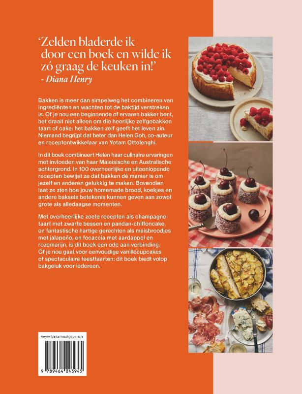 Het bakplezier spat van elke bladzijde in het langverwachte debuut van Helen Goh, co-auteur van de Ottolenghi bestsellers Sweet en Comfort ‘Helen in haar element. Beter dan dit kun je het niet krijgen.’ - YOTAM OTTOLENGHI ‘Zelden bladerde ik door een boek en wilde ik zó graag de keuken in!’ - DIANA HENRY Niets maakt zo gelukkig als een perfecte, zelfgebakken taart of cake en niemand begrijpt dat beter dan Helen Goh. Daarom vertrouwen bakliefhebbers ook al jaren op haar foolproof bakrecepten. Al meer dan tien jaar is zij als co-auteur en receptontwikkelaar de drijvende kracht achter bijna alle zoete creaties uit Yotam Ottolenghi’s wereldberoemde kookboeken. Bovendien weet Helen als geen ander dat bakken om meer draait dan alleen smaak: het verbindt en geeft betekenis aan zowel grote als alledaagse momenten. In haar eerste soloboek biedt ze ons dan ook niet alleen haar beste bakrecepten, maar evenzoveel manieren om het leven zin te geven. Of je nu kiest voor overheerlijk zoet - een pandan-chiffoncake, champagnetaart met zwarte bessen - of een van de fantastische hartige gerechten als maisbroodjes met jalapeño of focaccia met aardappel, knoflook en rozemarijn: elke hap is levensgeluk in haar puurste vorm. • Recepten uit alle hoeken van de wereld • Meer dan 100 zoete en hartige recepten • Inclusief een uitgebreide selectie vegan recepten • Van eenvoudige vanillecupcakes tot spectaculaire feesttaarten