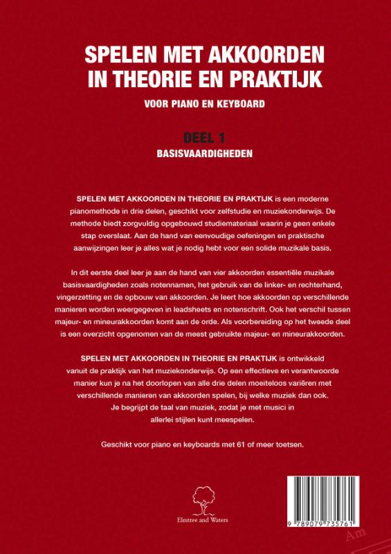 Spelen met akkoorden in theorie en praktijk is een moderne pianomethode in drie delen, geschikt voor zelfstudie en muziekonderwijs. De methode biedt zorgvuldig opgebouwd studiemateriaal waarin je geen enkele stap overslaat. Aan de hand van eenvoudige oefeningen en praktische aanwijzingen leer je alles wat je nodig hebt voor een solide muzikale basis. In dit eerste deel leer je aan de hand van vier akkoorden essentiële muzikale basisvaardigheden zoals notennamen, het gebruik van de linker- en rechterhand, vingerzetting en de opbouw van akkoorden. Je leert hoe akkoorden op verschillende manieren worden weergegeven in leadsheets en notenschrift. Ook het verschil tussen majeur- en mineurakkoorden komt aan de orde. Als voorbereiding op het tweede deel is een overzicht opgenomen van de meest gebruikte majeur- en mineurakkoorden. Spelen met akkoorden in theorie en praktijk is ontwikkeld vanuit de praktijk van het muziekonderwijs. Op een effectieve en verantwoorde manier kun je na het doorlopen van alle drie delen moeiteloos variëren met verschillende manieren van akkoorden spelen, bij welke muziek dan ook. Je begrijpt de taal van muziek, zodat je met musici in allerlei stijlen kunt meespelen. Geschikt voor piano en keyboards met 61 of meer toetsen. Door Iebele Abel en Hanna Hommes. Redactie Nederlandstalige uitgave Jannet Fink.