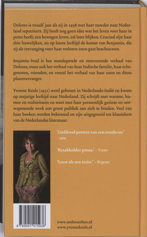 Dolores is twaalf jaar als zij in 1938 met haar moeder van Nederlands-Indië naar Nederland repatrieert. Zij heeft nog geen idee wat het leven voor haar in petto heeft; een bewogen leven, zal later blijken. Cruciaal zijn haar drie huwelijken, en op latere leeftijd de komst van Benjamin, die zij als vervanging voor haar verloren zoon gaat beschouwen. ‘Benjamins bruid’ is het meeslepende en ontroerende levensverhaal van Dolores, maar ook het verhaal van haar Indische familie, haar echtgenoten, vrienden, en vooral het verhaal van haar zoon en diens plaatsvervanger. Yvonne Keuls schetst op ontwapenende wijze een getroebleerde moeder-zoonrelatie en schuwt daarbij thema’s als dementie, homoseksualiteit en het feminisme niet, waarmee ze ook de tijdgeest van de jaren zestig, zeventig en tachtig van de vorige eeuw verbeeldt.