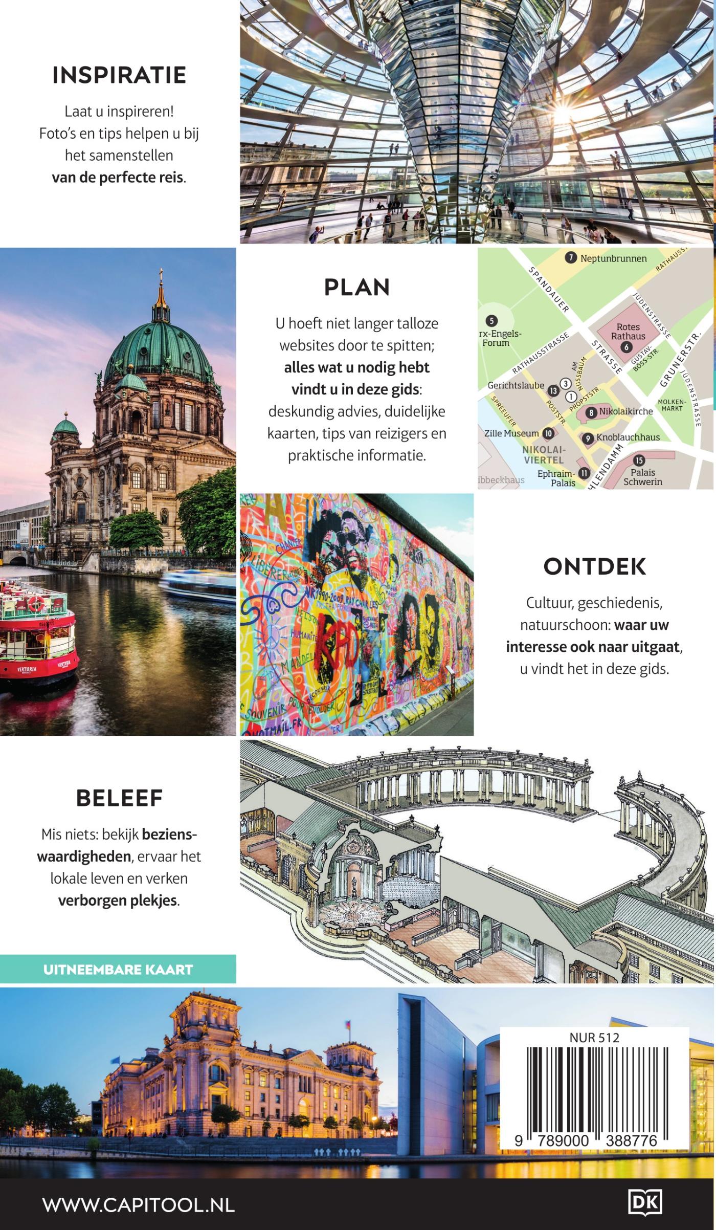 De Capitool Reisgids Berlijn helpt je bij het samenstellen van de perfecte reis. Deze reisgids verdeelt Berlijn in negen toeristische gebieden: rond Unter den Linden, Museumsinsel, Alexanderplatz, Noord-Mitte en Prenzlauer Berg, Friedrichshain, Tiergarten, Kreuzberg, rond de Kurfürstendamm en rond Schloss Charlottenburg. Slenter door de nauwe straatjes van het Nikolaiviertel, geniet van een biertje in een klassiek Brauhaus, wandel door het indrukwekkende Holocaust Denkmal, bezoek enkele van de mooiste musea ter wereld of kom tot rust in de groene Tiergarten. Van de kleurrijke streetart en het bruisende nachtleven tot prachtige wandelingen langs de kanalen: deze gids toont je de parels van Berlijn. ✔ Dankzij de prachtige fotografie waan je jezelf al op je bestemming ✔ In het jaaroverzicht van Berlijn vind je een selectie van festivals en evenementen door het jaar heen ✔ Gedetailleerde plattegronden helpen je bij het vinden van de weg ✔ Opengewerkte illustraties tonen het interieur van must sees, zoals de Berliner Dom, Kaiser Wilhelm Gedächtnis Kirche, Schloss Charlottenburg en het Neues Palais ✔ Ontdek de beste restaurants , mooiste accommodaties en leukste winkels ✔ Achter in de gids vind je onmisbare praktische informatie voor een ontspannen reis ✔ Met uitneembare kaart Met Capitool Reisgidsen ben je verzekerd van een reisgids boordevol informatie, met duidelijke plattegronden, prachtige foto’s en illustraties en handige tips. Met de Capitooltips geniet je van de mooiste uitzichten, maak je de beste vakantiefoto’s en ontdek je de bijzonderste plekjes. Jouw mooiste reis begint hier! Andere titels die wellicht interessant zijn: ✔ Capitool Duitsland ✔ Capitool Top 10 Berlijn Neem voor alle bestemmingen een kijkje op www.capitool.nl.
