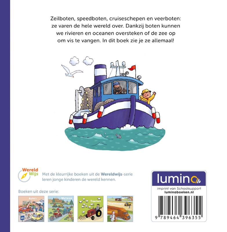 Zeilboten, speedboten, cruiseschepen en veerboten: ze varen de hele wereld over. Dankzij boten kunnen we rivieren en oceanen oversteken of de zee op om vis te vangen. In dit boek zie je ze allemaal!