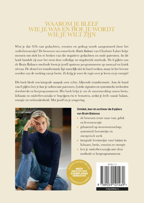 Pre-order Brain Balance: de methode nú en krijg gratis toegang tot de exclusieve online masterclass ‘Brain Balance: de methode’ (t.w.v. € 49,95) Wist je dat 95% van gedachten, emoties en gedrag wordt aangestuurd door het onderbewustzijn? De bewezen succesmethode Brain Balance van Charlotte Labee helpt mensen om zich los te breken van die negatieve gedachten en oude patronen. In dit boek bundelt zij voor het eerst deze volledige en uitgebreide methode. De 8 pijlers leren je jezelf opnieuw te programmeren op mentaal en fysiek niveau. De sleutel tot transformatie ligt namelijk niet in hard werken, maar in het bewust worden van de werking van je brein. Zo krijg je weer de regie over je leven en je energie!