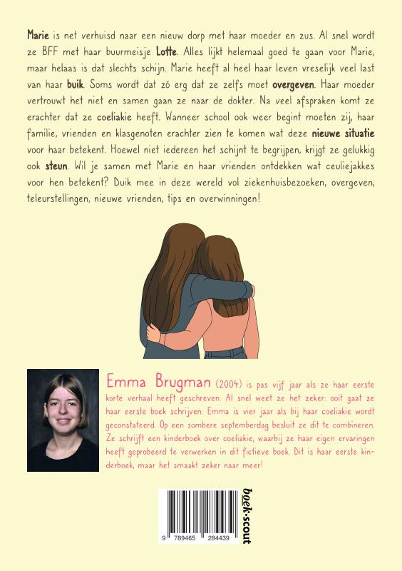 Marie is net verhuisd naar een nieuw dorp met haar moeder en zus. Al snel wordt ze BFF met haar buurmeisje Lotte. Alles lijkt helemaal goed te gaan voor Marie, maar helaas is dat slechts schijn. Marie heeft al heel haar leven vreselijk veel last van haar buik. Soms wordt dat zó erg dat ze zelfs moet overgeven. Haar moeder vertrouwt het niet en samen gaan ze naar de dokter. Na veel afspraken komt ze erachter dat ze coeliakie heeft. Wanneer school ook weer begint moeten zij, haar familie, vrienden en klasgenoten erachter zien te komen wat deze nieuwe situatie voor haar betekent. Hoewel niet iedereen het schijnt te begrijpen, krijgt ze gelukkig ook steun. Wil je samen met Marie en haar vrienden ontdekken wat ceuliejakkes voor hen betekent? Duik mee in deze wereld vol ziekenhuisbezoeken, overgeven, teleurstellingen, nieuwe vrienden, tips en overwinningen! De opbrengsten uit de royalty's van dit boek zullen gedoneerd worden aan de Nederlandse Coeliakie Vereniging.