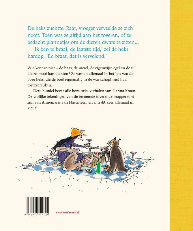 De heks zuchtte. Raar, vroeger verveelde ze zich nooit. Toen was ze altijd aan het toveren, of ze bedacht plannetjes om de dieren dwars te zitten… ‘Ik ben te braaf, de laatste tijd,’ zei de heks hardop. ‘En braaf, dat is vervelend.’ Ze is de meest geliefde tovenares van de lage landen: de boze heks van Hanna Kraan. Generaties kinderen groeiden op met de narrige heks en de dieren met wie ze in het bos samenleeft. Nu zijn alle verhalen voor het eerst gebundeld in één dik boek. Annemarie van Haeringen pakte haar penseel opnieuw op om alle verhalen te voorzien van illustraties in kleur. Het resultaat is een boek dat geen lezer mag missen – of je de verhalen nu al kent of nog niet! De grote boze heks is een feest der herkenning voor alle boze heks-fans; een prachtige kennismaking met de heks en alle dieren voor wie hen nog niet kent en een unieke aanvulling voor iedere (school)bibliotheek.
