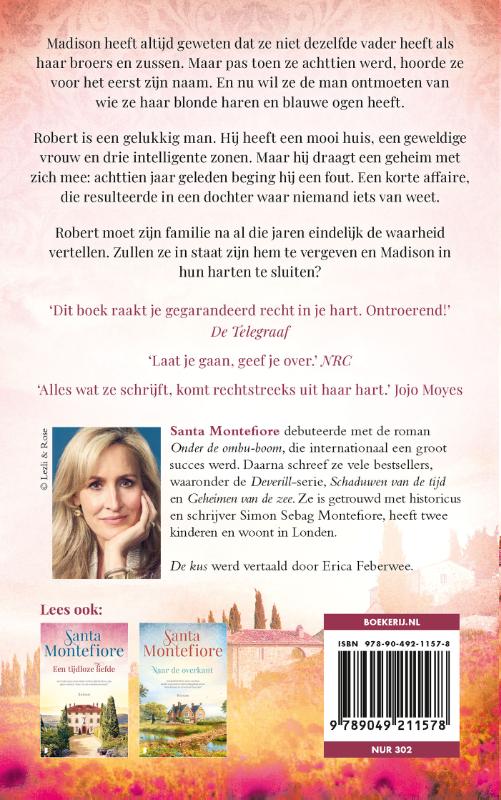 Een korte roman over familiebanden, ouderlijke liefde en die ene ware, eeuwigdurende connectie Madison heeft altijd geweten dat ze niet dezelfde vader heeft als haar broers en zussen. Maar pas toen ze achttien werd, hoorde ze voor het eerst zijn naam. En nu wil ze de man ontmoeten van wie ze haar blonde haren en blauwe ogen heeft. Robert is een gelukkig man. Hij heeft een mooi huis, een geweldige vrouw en drie intelligente zonen. Maar hij draagt een geheim met zich mee: achttien jaar geleden beging hij een fout. Een korte affaire, die resulteerde in een dochter waar niemand iets van weet. Robert moet zijn familie na al die jaren eindelijk de waarheid vertellen. Zullen ze in staat zijn hem te vergeven en Madison in hun harten te sluiten? In de pers ‘Montefiore doet je vergeten waar en met wie je bent.’ Libelle ‘Meeslepend en ontroerend.’ Max Magazine ‘Wegdromen met Montefiore.’ HDC-kranten
