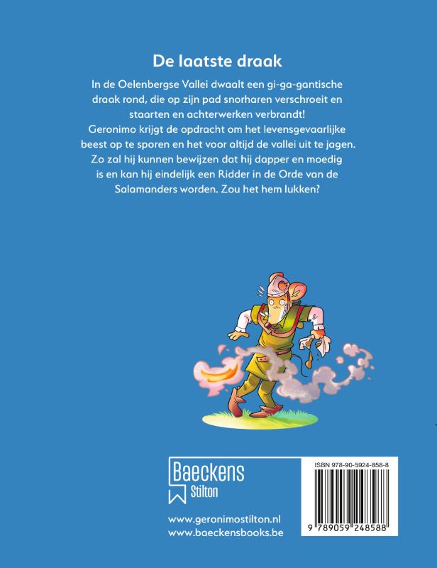Als Geronimo op miraculeuze wijze weer eens op het middeleeuwse Toverslot belandt, wacht hem een opdracht waar hij helemaal niet blij mee is. Hij wordt op een monsterlijke vuurspuwende draak afgestuurd. Niets voor Geronimo natuurlijk, maar ja … zo maakt hij wel kans om het eindelijk tot Ridder van de Orde der Salamanders te schoppen. Doodsbenauwd gaat hij op pad en vindt zowaar de draak, maar dat blijkt helemaal niet zo’n monster te zijn. Integendeel, het is een vrolijk beest dat hem zelfs graag wil helpen om een echte ridder zonder vrees (ahum…) te worden!