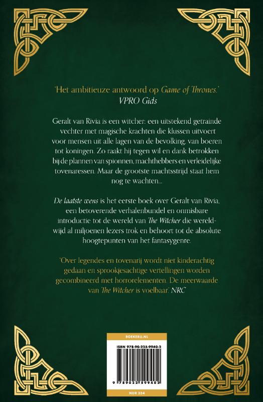 Een van de populairste fantasyseries ooit geschreven: voor het eerst in prachtig verzorgde verzamelaarseditie Geralt van Rivia is een witcher: een uitstekend getrainde vechter met magische krachten die klussen uitvoert voor mensen uit alle lagen van de bevolking, van boeren tot koningen. Zo raakt hij tegen wil en dank betrokken bij de plannen van spionnen, machthebbers en verleidelijke tovenaressen. Maar de grootste machtsstrijd staat hem nog te wachten… De laatste wens is het eerste boek over Geralt van Rivia, een betoverende verhalenbundel en onmisbare introductie tot de wereld van The Witcher die wereldwijd al miljoenen lezers trok en behoort tot de absolute hoogtepunten van het fantasygenre. In de pers ‘Over legendes en tovenarij wordt niet kinderachtig gedaan, sprookjesachtige vertellingen worden gecombineerd met horrorelementen. De meerwaarde van The Witcher is voelbaar.’ NRC ‘Was magie in Game of Thrones eigenlijk bijzaak, in The Witcher -reeks wordt de volumeknop met magie, heksen & monsters vol opengedraaid… Ten zeerste aan te raden, ook voor hen die niet honderd miljoen uur achter hun PlayStation hebben doorgebracht.’ Trouw ‘Het ambitieuze antwoord op Game of Thrones. ’ VPRO Gids