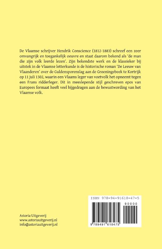De Vlaamse schrijver Hendrik Conscience (1812-1883) schreef een zeer omvangrijk en toegankelijk oeuvre en staat daarom bekend als ‘de man die zijn volk leerde lezen’. Zijn bekendste werk en de klassieker bij uitstek in de Vlaamse letterkunde is de historische roman ‘De Leeuw van Vlaanderen’ over de Guldensporenslag aan de Groeningebeek te Kortrijk op 11 juli 1302, waarin een Vlaams leger van voetvolk het opneemt tegen een Frans ridderleger. Dit in meeslepende stijl geschreven epos van Europees formaat heeft veel bijgedragen aan de bewustwording van het Vlaamse volk.