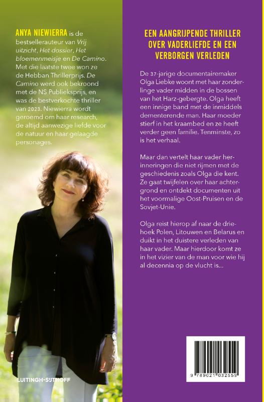 Na het succes van de bestsellers Het bloemenmeisje en De Camino komt Anya Niewierra met De nomade . Een aangrijpende thriller over vaderliefde en een verborgen verleden. De 37-jarige documentairemaker Olga Liebke woont met haar zonderlinge vader in het Harz-gebergte. Olga heeft een innige band met de inmiddels dementerende man. Haar moeder stierf in het kraambed en ze heeft verder geen familie. Tenminste, zo is het verhaal. Maar dan vertelt haar vader herinneringen die niet rijmen met de geschiedenis zoals zij die kent. Ze gaat twijfelen over haar achtergrond en ontdekt documenten uit de voormalige Sovjet-Unie. Olga reist naar de driehoek Polen, Litouwen en Belarus en stuit op een huiveringwekkend geheim. ‘Anya Niewierra heeft met De nomade weer een magnifiek boek afgeleverd, dat mogelijk nog indrukwekkender is dan De Camino .’ Heleen Spanjaard, Margriet ‘Verrassend, meeslepend en bloedstollend. De nomade is een waardige opvolger van De Camino .’ Rob Cobben, cultuurverslaggever Dagblad De Limburger