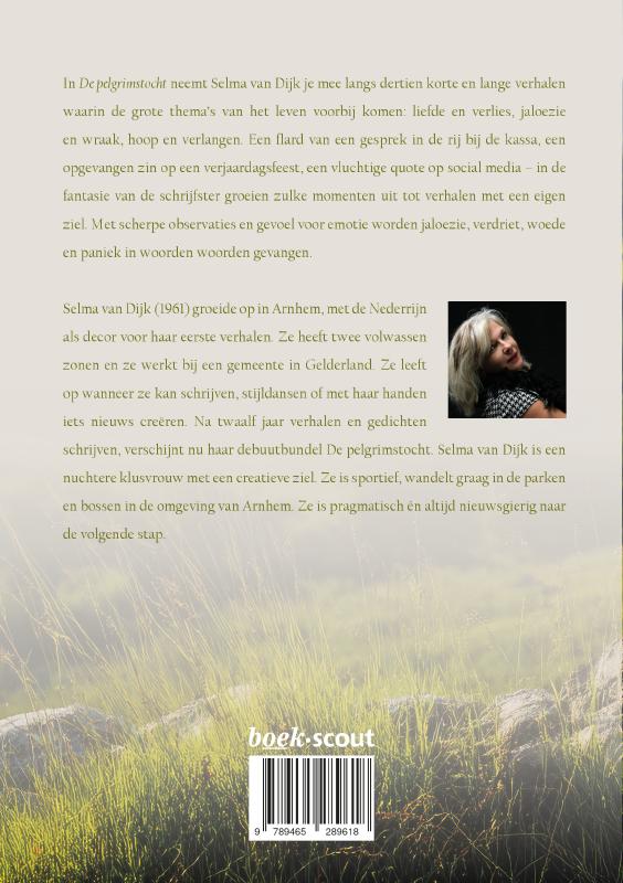 In De pelgrimstocht neemt Selma van Dijk je mee langs dertien korte en lange verhalen waarin de grote thema’s van het leven voorbij komen: liefde en verlies, jaloezie en wraak, hoop en verlangen. Een flard van een gesprek in de rij bij de kassa, een opgevangen zin op een verjaardagsfeest, een vluchtige quote op social media – in de fantasie van de schrijfster groeien zulke momenten uit tot verhalen met een eigen ziel. Met scherpe observaties en gevoel voor emotie worden jaloezie, verdriet, woede en paniek in woorden woorden gevangen.