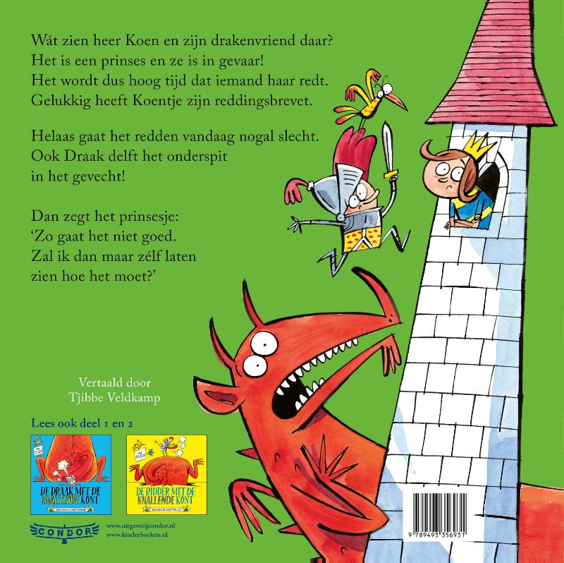 Wát zien heer Koen en zijn drakenvriend daar? Het is een prinses en ze is in gevaar! Het wordt dus hoog tijd dat iemand haar redt. Gelukkig heeft Koentje zijn reddingsbrevet. Helaas gaat het redden vandaag nogal slecht. Ook Draak delft het onderspit in het gevecht! Dan zegt het prinsesje: ‘Zo gaat het niet goed. Zal ik dan maar zélf laten zien hoe het moet?’