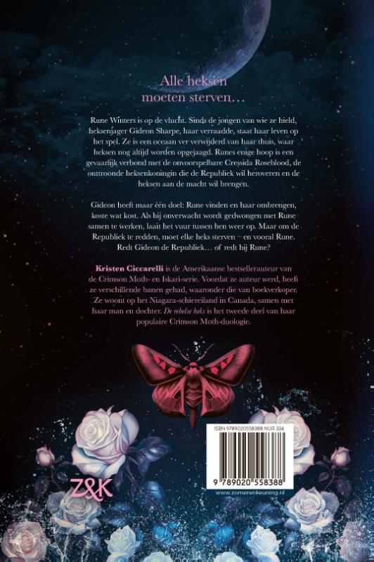 Nu in een prachtige gebonden editie, met print-op-snee! Rune Winters is op de vlucht voor de Republiek die haar heeft verraden en voor Gideon Sharpe, de jongen die haar hart brak. Terwijl ze aan de andere kant van de oceaan hulp vindt bij de gevallen heksenkoningin Cressida Roseblood, is Gideon vastbesloten elke heks uit te roeien om zijn verleden te begraven – behalve Rune, die zowel de sleutel is tot Cressida’s macht als tot zijn eigen hart. Maar om haar te stoppen, is hij bereid alles te riskeren… zelfs zijn eigen leven. ‘De rebelse heks’ is het tweede deel van de spannende romantasy-duologie ‘The Crimson Moth’ van Kristen Ciccarelli, en het directe vervolg op 'De harteloze jager'.