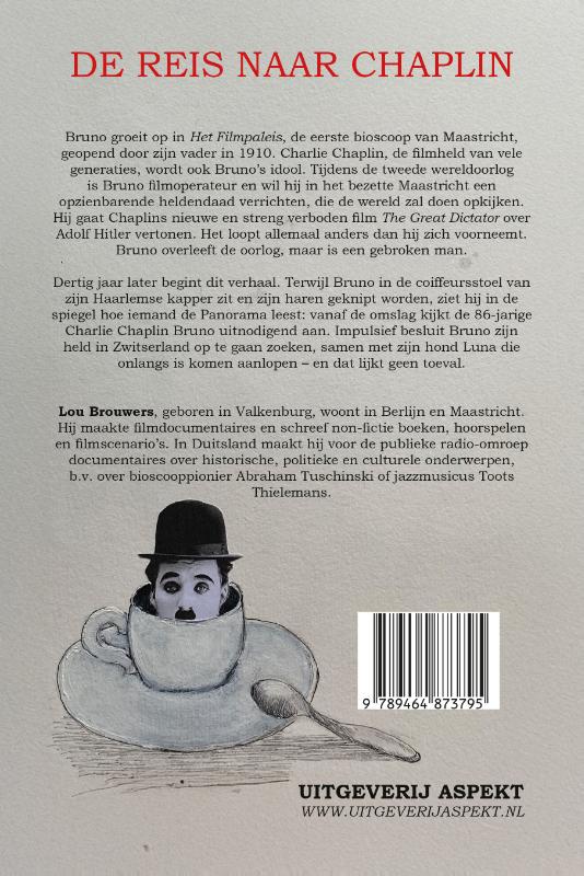 Bruno groeit op in Het Filmpaleis, de eerste bioscoop van Maastricht, geopend door zijn vader in 1910. Charlie Chaplin, de filmheld van vele generaties, wordt ook Bruno’s idool. Tijdens de tweede wereldoorlog is Bruno filmoperateur en wil hij in het bezette Maastricht een opzienbarende heldendaad verrichten, die de wereld zal doen opkijken. Hij gaat Chaplins nieuwe en streng verboden film The Great Dictator over Adolf Hitler vertonen. Het loopt allemaal anders dan hij zich voorneemt. Bruno overleeft de oorlog, maar is een gebroken man. Dertig jaar later begint dit verhaal. Terwijl Bruno in de coiffeursstoel van zijn Haarlemse kapper zit en zijn haren geknipt worden, ziet hij in de spiegel hoe iemand de Panorama leest: vanaf de omslag kijkt de 86-jarige Charlie Chaplin Bruno uitnodigend aan. Impulsief besluit Bruno zijn held in Zwitserland op te gaan zoeken, samen met zijn hond Luna die onlangs is komen aanlopen – en dat lijkt geen toeval. Lou Brouwers, geboren in Valkenburg, woont in Berlijn en Maastricht. Hij maakte filmdocumentaires en schreef non-fictie boeken, hoorspelen en filmscenario’s. In Duitsland maakt hij voor de publieke radio-omroep documentaires over historische, politieke en culturele onderwerpen, b.v. over bioscooppionier Abraham Tuschinski of jazzmusicus Toots Thielemans.