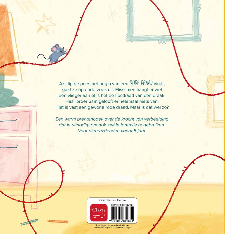 Als Jip de poes het begin van een rode draad vindt, gaat ze op onderzoek uit. Misschien hangt er wel een vlieger aan, of misschien is het de flosdraad van een draak. Haar broer Sam gelooft er helemaal niets van. Het is vast een gewone rode draad. Maar is dat wel zo? Een warm prentenboek over de kracht van verbeelding. Voor dierenvrienden vanaf 5 jaar.