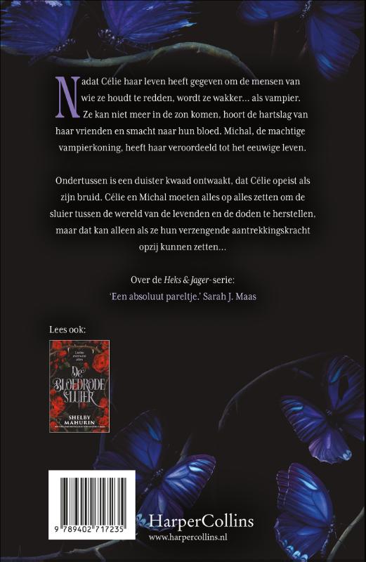 De schaduwbruid is het razend spannende slot van de Scarlet Veil -duologie van TikTok-hit Shelby Mahurin. Nadat Célie haar leven heeft gegeven om de mensen van wie ze houdt te redden, wordt ze wakker… als vampier. Ze kan niet meer in de zon komen, hoort de hartslag van haar vrienden en smacht naar hun bloed. Michal, de machtige vampierkoning, heeft haar veroordeeld tot het eeuwige leven. Ondertussen is een duister kwaad ontwaakt, dat Célie opeist als zijn bruid. Célie en Michal moeten alles op alles zetten om de sluier tussen de wereld van de levenden en de doden te herstellen, maar dat kan alleen als ze hun verzengende aantrekkingskracht opzij kunnen zetten…. Over de Heks & Jager -serie: ‘Een absoluut pareltje.’ Sarah J. Maas
