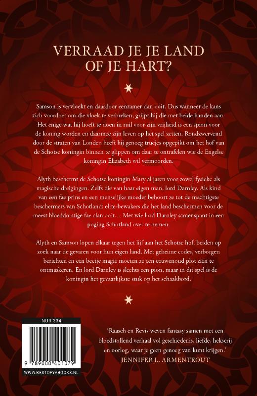Special edition met sprayed edges. Romantasy met een originele twist op de klassieke enemies-to-lovers trope, voor fans van Holly Black en Outlander . Wat gebeurt er wanneer de paden van een Engelse spion en een fae elkaar kruisen? Samson Calthorpe heeft er alles voor over om zijn vader te helpen, dus als hij gevraagd wordt om een spion te worden aan het Engelse hof, hapt hij meteen toe. Alyth Graham is een bastaard van een faeprins en een menselijke moeder. Ze houdt de man van de Schotse koningin, lord Darnley, al jaren in de gaten. Het enige dat Alyth en Samson met elkaar delen is hun haat voor lord Darnley. Met behulp van geheime codes, verborgen berichten en een klein beetje magie moeten Alyth en Samson een eeuwenoud plan zien te ontrafelen. Van New York Times -bestsellerauteurs Sara Raasch en Beth Revis, bekend van de Witch and Hunter -duologie.