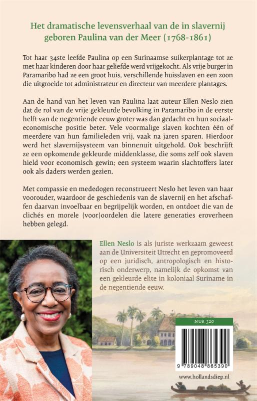 Paulina (1768 – 1861) werd geboren in slavernij op een suikerplantage aan de Surinamerivier, meer dan twintig jaar later zou ze haar vrijheid krijgen door aannemer Klaas van der Meer, die haar en hun twee kinderen zou vrijkopen. Naderhand zou nog een derde kind in vrijheid worden geboren. Als vrije burger in Paramaribo behoorde ze tot de middenklasse met een groot huis, werd ze eigenaar van verschillende huisslaven en zou ze haar zoon zien uitgroeien tot directeur van een plantage. Met compassie en mededogen reconstrueert historicus Ellen Neslo het leven van haar voorouder, waardoor de geschiedenis van de slavernij en het afschaffen daarvan invoelbaar en begrijpelijk wordt en ontdoet ze die van de clichés en morele (voor)oordelen die latere generaties eroverheen hebben gelegd.