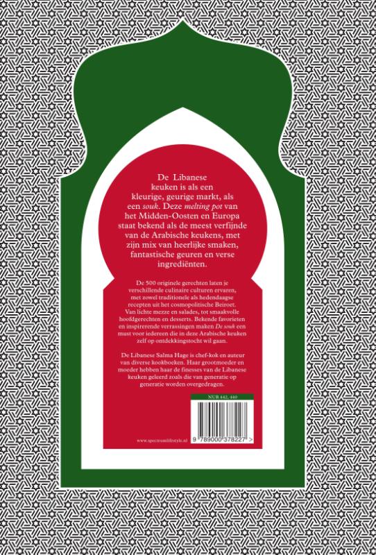 Het beste van de Libanese keuken De Souk, het beste van de Libanese keuken is met meer dan 500 authentieke en traditionele recepten hét standaardwerk over de meest verfijnde keuken. De recepten zijn makkelijk thuis zelf te maken. Met een mix van heerlijke smaken, fantastische geuren en verse ingrediënten. De Libanese keuken is als een kleurige, geurige markt, als een souk . Deze melting pot van het Midden-Oosten en Europa staat bekend als de meest verfijnde van de Arabische keukens, met zijn mix van heerlijke smaken, fantastische geuren en verse ingrediënten. De 500 originele gerechten laten je verschillende culinaire culturen ervaren, met zowel traditionele als hedendaagse recepten uit het cosmopolitische Beiroet. Van lichte mezze en salades, tot smaakvolle hoofdgerechten en desserts. Bekende favorieten, als hummus, fattoush, tabouleh en baba ganoush, en inspirerende verrassingen maken De souk een must voor iedereen die in deze Arabische keuken zelf op ontdekkingstocht wil gaan. De Libanese Salma Hage is chef-kok en auteur van diverse kookboeken. Haar grootmoeder en moeder hebben haar de finesses van de Libanese keuken geleerd zoals die van generatie op generatie worden overgedragen.