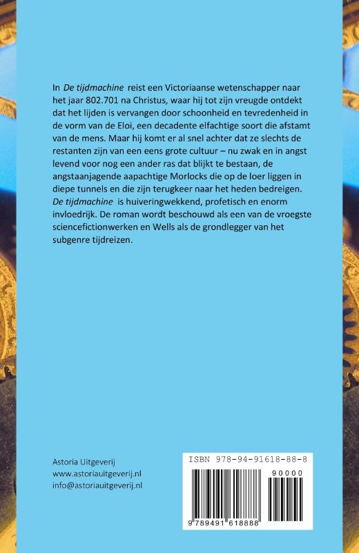 In De tijdmachine reist een Victoriaanse wetenschapper naar het jaar 802.701 na Christus, waar hij tot zijn vreugde ontdekt dat het lijden is vervangen door schoonheid en tevredenheid in de vorm van de Eloi, een decadente elfachtige soort die afstamt van de mens. Maar hij komt er al snel achter dat ze slechts de restanten zijn van een eens grote cultuur – nu zwak en in angst levend voor nog een ander ras dat blijkt te bestaan, de angstaanjagende aapachtige Morlocks die op de loer liggen in diepe tunnels en die zijn terugkeer naar het heden bedreigen. De tijdmachine is huiveringwekkend, profetisch en enorm invloedrijk. De roman wordt beschouwd als een van de vroegste sciencefictionwerken en Wells als de grondlegger van het subgenre tijdreizen.