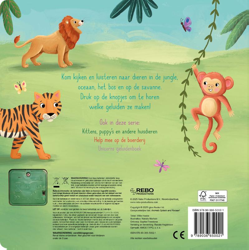 Kom kijken en luisteren naar dieren in de jungle, oceaan, het bos en op de savanne. Druk op de knopjes om te horen welke geluiden ze maken!