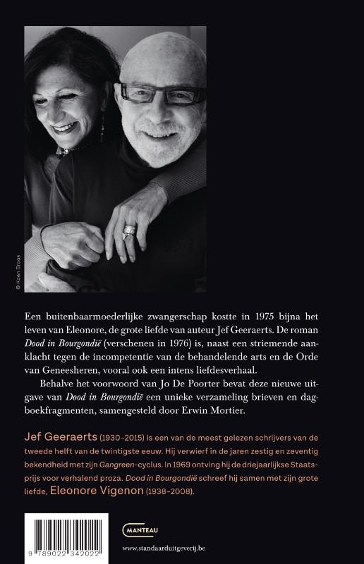Een buitenbaarmoederlijke zwangerschap kostte in 1975 bijna het leven van Eleonore, de grote liefde van auteur Jef Geeraerts. De roman Dood in Bourgondië (verschenen in 1976) is, naast een striemende aanklacht tegen de incompetentie van de behandelende arts en de Orde van Geneesheren, vooral ook een intens liefdesverhaal.Behalve het voorwoord van Jo De Poorter bevat deze nieuwe uitgave van Dood in Bourgondië een unieke verzameling brieven en dagboekfragmenten, samengesteld door Erwin Mortier.