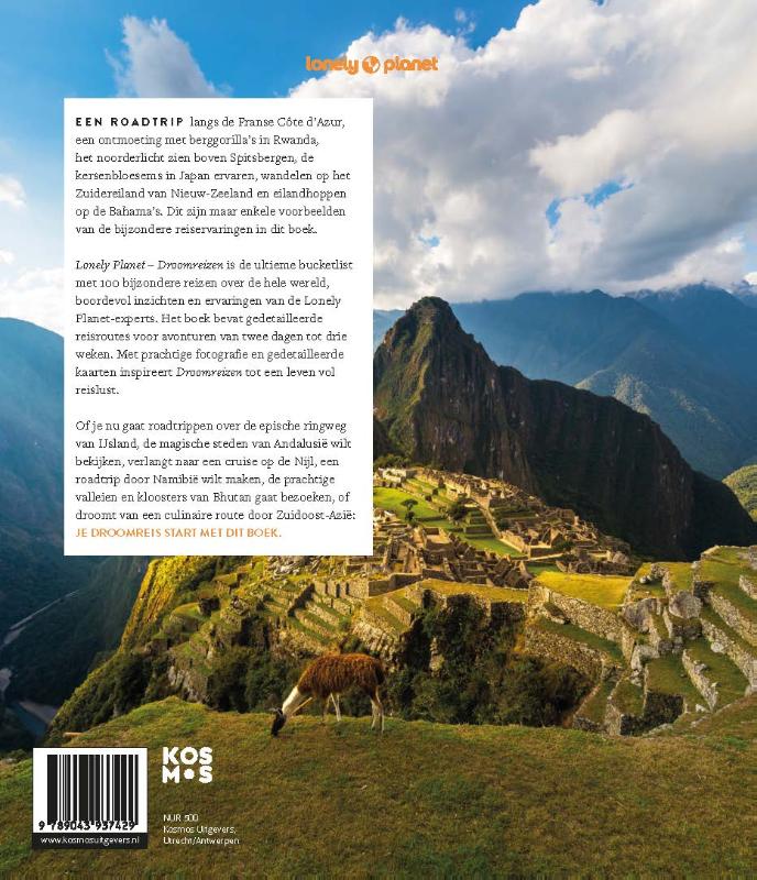 Eilandhoppen op de Bahama’s, roadtrippen over de epische ringweg van IJsland, de magische steden van Andalusië, wandelen over de Juliana Trail, een cruise op de Nijl, een roadtrip door Namibië, de prachtige valleien en kloosters van Bhutan, of een culinaire route door Zuidoost-Azië: Lonely Planet – Droomreizenis de ultieme bucketlist voor de mooiste reizen. Het bevat gedetailleerde reisroutes voor avonturen van twee dagen tot drie weken. Met spectaculaire foto’s, praktische informatie en verhalen van ervaren reizigers.
