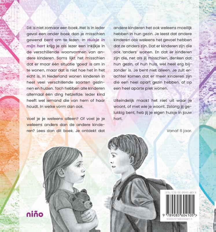 Dit is niet zomaar een boek. Het is in ieder geval een ander boek dan je misschien gewend bent om te lezen. In Huisje in mijn hart krijg je als lezer een inkijkje in de verschillende woonvormen van andere kinderen. Soms lijkt het misschien dat er maar één situatie ‘goed’ is om in te wonen, maar dat is niet hoe het in het echt is. In Nederland wonen kinderen in heel veel verschillende soorten gezinnen en huizen. Toch hebben alle kinderen allemaal één ding hetzelfde. Ieder kind heeft wel iemand die van hem of haar houdt. In welke vorm dan ook. Voel je je weleens alleen? Of voel je je weleens anders dan de andere kinderen? Lees dan dit boek. Je ontdekt dat andere kinderen het ook weleens moeilijk hebben in hun gezin. Je leest dat andere kinderen ook weleens het gevoel hebben dat ze anders zijn. Dat er kinderen zijn die ook ‘anders’ wonen. En dat er kinderen zijn die, net als jij misschien, denken dat hun gezin, of hun huis, wel heel erg bijzonder is. Je bent niet alleen. Je zult erachter komen dat er meer kinderen zijn die een heel apart gezin hebben, of op een heel aparte plek wonen. Uiteindelijk maakt het niet uit waar je woont, of met wie je woont. Zolang jij gelukkig bent, heb jij je eigen huisje in jouw hart. Vanaf 6 jaar. "Dit boek kan helpen om te praten over je thuis voelen en normaal willen zijn. Om vragen te stellen. Om elkaar beter te begrijpen. En vooral: om te laten zien dat iedereen een beetje anders is, en dat dat juist helemaal normaal is. Lyona Rose is er met dit boek opnieuw in geslaagd om een ingewikkeld onderwerp als pleegzorg voor jonge kinderen begrijpelijk en bespreekbaar te maken." Chantal Wittenberg, communicatieadviseur pleegzorg bij Jeugdzorg Nederland