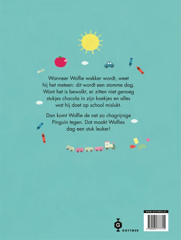 'Een leuke stomme dag' gaat over hoe een andere kijk op dingen alles lijkt te kunnen veranderen, en niemand kan daar beter bij helpen dan een vriend. Daar komt Wolfie achter in dit kleurrijke, eigenwijze prentenboek. Hij heeft namelijk last van iets wat we allemaal weleens hebben: een stomme dag... En vandaag is het wel een héle stomme dag. Althans, dat vindt Wolfie, want van een afstandje lijkt het wel mee te vallen. Niemand op school begrijpt hoe hij zich voelt. Of toch wel? Pinguïn heeft ook een niet al te beste dag. En samen alles stom vinden is eigenlijk best leuk. Met ontzettend veel droge humor (en een paar heel goed getroffen chagrijnige gezichtjes) laat de Italiaanse prentenboekenmaker Marianna Coppo zien hoe de bewolkte dag van de kleine, schattige Wolfie toch heel zonnig wordt.