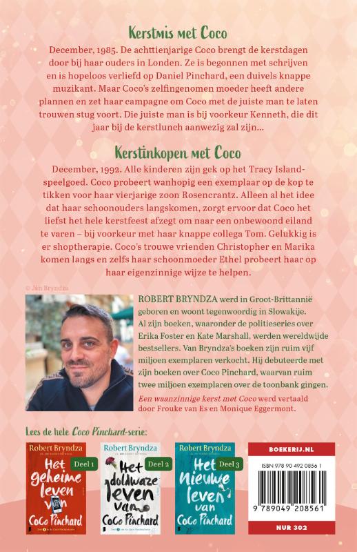 Voor de lezers van Helen Fielding, Sophie Kinsella en natuurlijk die van Bryndza zelf Twee heerlijke kerstverhalen van Robert Bryndza Kerstmis met Coco December, 1985. De achttienjarige Coco brengt de kerstdagen door bij haar ouders in Londen. Ze is begonnen met schrijven en is hopeloos verliefd op Daniel Pinchard, een duivels knappe muzikant. Maar Coco’s zelfingenomen moeder heeft andere plannen en zet haar campagne om Coco met de juiste man te laten trouwen stug voort. Die juiste man is bij voorkeur Kenneth, die dit jaar bij de kerstlunch aanwezig zal zijn… Kerstinkopen met Coco December, 1992. Alle kinderen zijn gek op het Tracy Island-speelgoed. Coco probeert wanhopig een exemplaar op de kop te tikken voor haar vierjarige zoon Rosencrantz. Alleen al het idee dat haar schoonouders langskomen, zorgt ervoor dat Coco het liefst het hele kerstfeest afzegt om naar een onbewoond eiland te varen – bij voorkeur met haar knappe collega Tom. Gelukkig is er shoptherapie. Coco’s trouwe vrienden Christopher en Marika komen langs en zelfs haar schoonmoeder Ethel probeert haar op haar eigenzinnige wijze te helpen. Over Het geheime leven van Coco Pinchard ‘Grappig: van de schrijver van succesvolle thrillerseries komt nu deze romcom.’ VROUW ‘Een sprankelende, humoristische feelgoodroman vol memorabele personages. Fans van luchtige, Britse humor en verhalen over sterke vrouwen die zichzelf opnieuw uitvinden zullen hier zeker van genieten.’ **** Hebban.nl ‘Met humor en toegankelijk geschreven.’ NBD Biblion