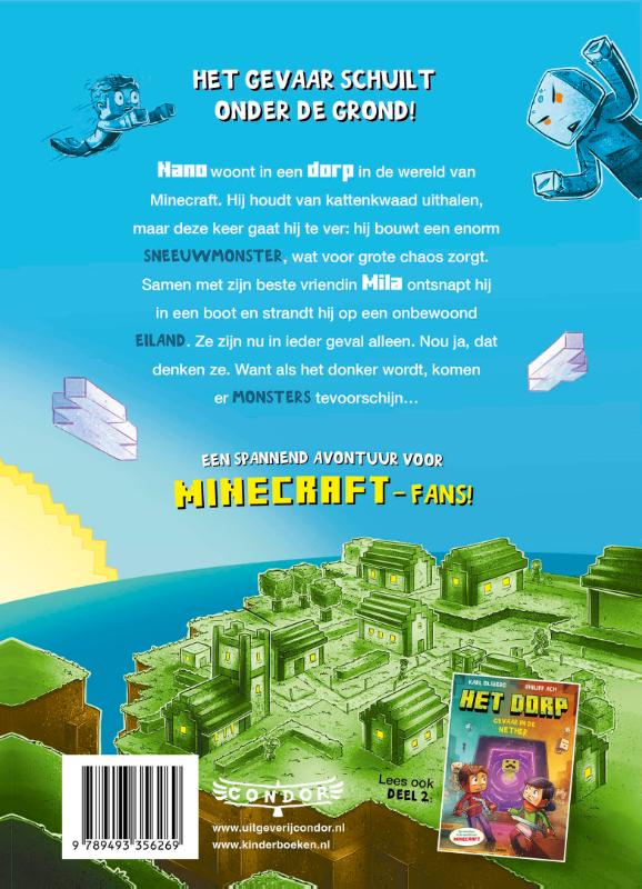 Nano woont in een dorp in de wereld van Minecraft. Hij houdt van kattenkwaad uithalen, maar deze keer gaat hij te ver: hij bouwt een enorm sneeuwmonster, wat voor grote chaos zorgt. Samen met zijn beste vriendin Mila ontsnapt hij in een boot en strandt hij op een onbewoond eiland. Ze zijn nu in ieder geval alleen. Nou ja, dat denken ze. Want als het donker wordt, komen er monsters tevoorschijn… Een rijk geïllustreerd boek dat van gamers lezers maakt!