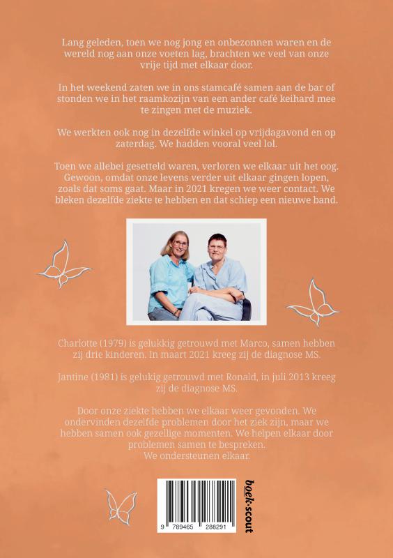 Lang geleden, toen we nog jong en onbezonnen waren en de wereld nog aan onze voeten lag, brachten we veel van onze vrije tijd met elkaar door. In het weekend zaten we in ons stamcafé samen aan de bar of stonden we in het raamkozijn van een ander café keihard mee te zingen met de muziek. We werkten ook nog in dezelfde winkel op vrijdagavond en op zaterdag. We hadden vooral veel lol. Toen we allebei gesetteld waren, verloren we elkaar uit het oog. Gewoon, omdat onze levens verder uit elkaar gingen lopen, zoals dat soms gaat. Maar in 2021 kregen we weer contact. We bleken dezelfde ziekte te hebben en dat schiep een nieuwe band.