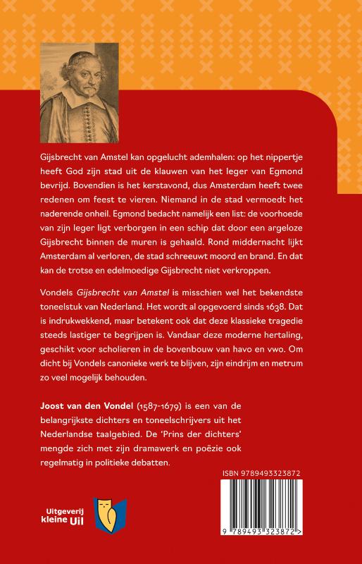 Gijsbrecht van Amstel kan opgelucht ademhalen: op het nippertje heeft God zijn stad uit de klauwen van het leger van Egmond bevrijd. Bovendien is het kerstavond, dus Amsterdam heeft twee redenen om feest te vieren. Niemand in de stad vermoedt het naderende onheil. Egmond bedacht namelijk een list: de voorhoede van zijn leger ligt verborgen in een schip dat door een argeloze Gijsbrecht binnen de muren is gehaald. Rond middernacht lijkt Amsterdam al verloren, de stad schreeuwt moord en brand. En dat kan de trotse en edelmoedige Gijsbrecht niet verkroppen. Vondels Gijsbrecht van Amstel is misschien wel het bekendste toneelstuk van Nederland. Het wordt al opgevoerd sinds 1638. Dat is indrukwekkend. Toch is deze klassieke tragedie steeds lastiger te begrijpen. Vandaar deze moderne hertaling, geschikt voor scholieren in de bovenbouw van havo en vwo en studenten Nederlands. Om dicht bij Vondels canonieke werk te blijven, zijn eindrijm en metrum zo veel mogelijk behouden. De uitgave bevat naast de hertaling ook de oorspronkelijke tekst, zodat leerlingen en studenten ook een beeld krijgen van de taalverandering door de loop der eeuwen. ‘Deze vertaling toont aan dat een klassiek toneelstuk geen museumstuk is.’ Bas Jongenelen Frits Dijkstra (1988) is docent Nederlands op een gymnasium in de stad Groningen en voormalig redacteur van Lezen voor de Lijst. Literatuur staat centraal in zijn lessen, met Vondels Gijsbrecht van Aemstel als vaste waarde in de bovenbouw.