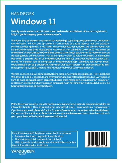 Als je op zoek bent naar een uitgebreide en toegankelijke gids voor het nieuwste besturingssysteem van Microsoft, dan is de derde editie van het Handboek Windows 11 een must-read. Dit boek biedt een diepgaande verkenning van Windows 11, van basisinstellingen tot geavanceerde functies. Het Handboek Windows 11 biedt heldere, stapsgewijze instructies die je helpen om het beste uit het besturingssysteem te halen. Een van de belangrijkste aspecten van Windows 11 is de gebruiksvriendelijkheid. Het boek legt uit hoe je de interface kunt aanpassen naar jouw wensen en hoe je efficiënt kunt navigeren door de nieuwe menu’s en instellingen. Met de komst van Windows 11 zijn er veel nieuwe functies en verbeteringen geïntroduceerd. Het Handboek Windows 11 gaat diep in op deze functies, waaronder het startmenu, de taakbalk en de widgets. Beveiliging is een belangrijk thema in het Handboek Windows 11. Het boek behandelt hoe je jouw computer beschermt tegen virussen en malware en hoe je privacy-instellingen kunt optimaliseren voor een veilige online ervaring. Bovendien biedt het praktische tips voor het maken van back-ups en het veilig bewaren van je gegevens. Voor gebruikers die geïnteresseerd zijn in het personaliseren van hun Windows 11 ervaring, biedt het Handboek Windows 11 een schat aan informatie over thema’s, achtergronden, en geluidsinstellingen. Het legt ook uit hoe je virtuele bureaubladen kunt instellen en beheren, wat bijdraagt aan een meer georganiseerde en productieve computerervaring. Trefwoorden: microsoft windows 11