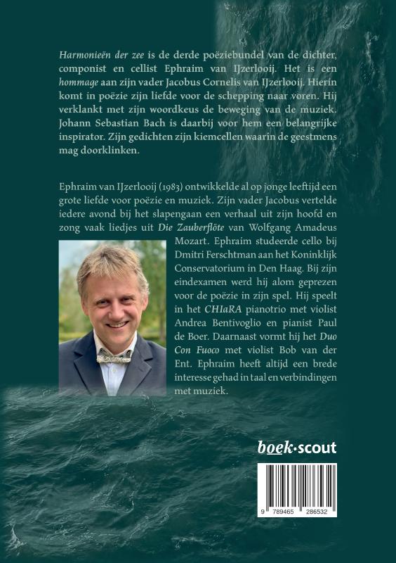 Harmonieën der zee is de derde poëziebundel van de dichter, componist en cellist Ephraim van IJzerlooij. Het is een hommage aan zijn vader Jacobus Cornelis van IJzerlooij. Hierin komt in poëzie zijn liefde voor de schepping naar voren. Hij verklankt met zijn woordkeus de beweging van de muziek. Johann Sebastian Bach is daarbij voor hem een belangrijke inspirator. Zijn gedichten zijn kiemcellen waarin de geestmens mag doorklinken.
