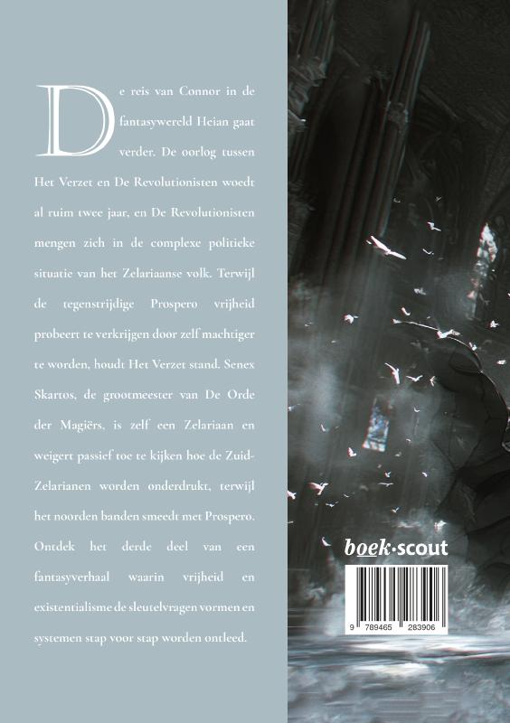 De reis van Connor in de fantasywereld Heian gaat verder. De oorlog tussen Het Verzet en De Revolutionisten woedt al ruim twee jaar, en De Revolutionisten mengen zich in de complexe politieke situatie van het Zelariaanse volk. Terwijl de tegenstrijdige Prospero vrijheid probeert te verkrijgen door zelf machtiger te worden, houdt Het Verzet stand. Senex Skartos, de grootmeester van De Orde der Magiërs, is zelf een Zelariaan en weigert passief toe te kijken hoe de Zuid-Zelarianen worden onderdrukt, terwijl het noorden banden smeedt met Prospero. Ontdek het derde deel van een fantasyverhaal waarin vrijheid en existentialisme de sleutelvragen vormen en systemen stap voor stap worden ontleed.
