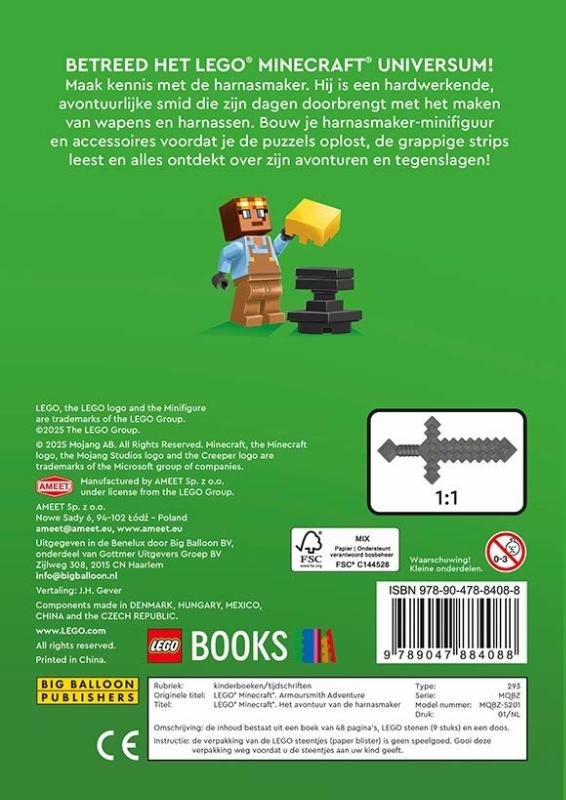 Betreed het LEGO® Minecraft®-universum! Maak in 'Het avontuur van de harnasmaker' kennis met de harnasmaker. Hij is een hardwerkende, avontuurlijke smid die zijn dagen doorbrengt met het maken van wapens en harnassen. Bouw je harnasmaker-minifiguur met accessoires voordat je de puzzels oplost, de grappige strips leest en alles ontdekt over zijn avonturen en tegenslagen! Minecraft is een spel waarin je door het plaatsen van blokken je eigen unieke wereld en oneindige avontuur kunt creëren. Niets is onmogelijk. Dit spel is al jarenlang populair bij kinderen en staat erom bekend een grote educatieve bijdrage te hebben aan de creativiteit en verbetering van schoolprestaties. Het LEGO®-avontuur begint zodra je als kind je allereerste LEGO®-steentje vastpakt. Met de vrolijk gekleurde bouwstenen van LEGO® kunnen zowel kinderen als volwassenen een eigen wereld creëren. Of je een eigen stad wilt bouwen, de snelste voertuigen of de mooiste gebouwen, met LEGO® kan het allemaal. Dit creatieve en duurzame speelgoed is niet meer weg te denken! Lees ook LEGO® Minecraft® Ideeën of LEGO® Ninjago - Geheimen van de Ninja.