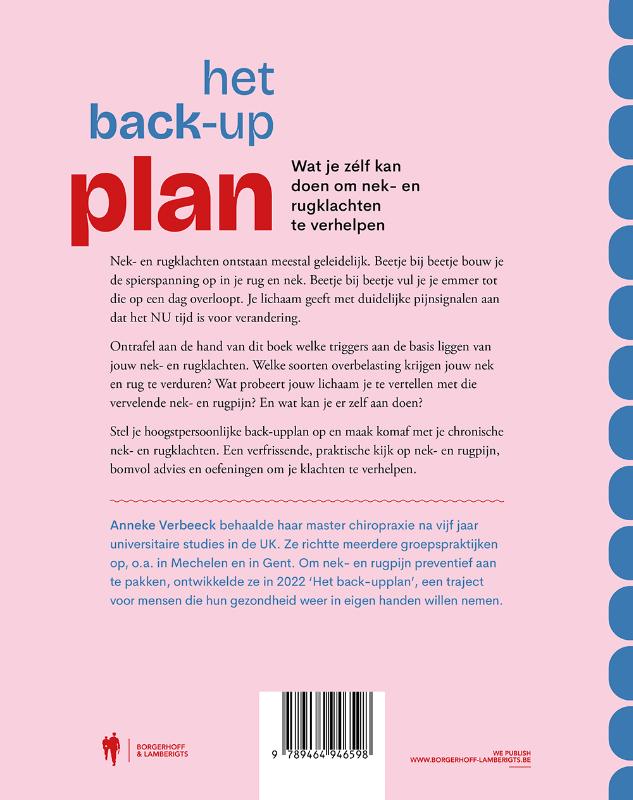 Rugklachten ontstaan meestal geleidelijk. Beetje bij beetje bouw je de spierspanning op in je rug en nek. Beetje bij beetje vul je je emmer tot die op een dag overloopt. Je lichaam geeft met duidelijke pijnsignalen aan dat het NU tijd is voor verandering. Ontrafel aan de hand van dit boek welke triggers aan de basis liggen van jouw rugklachten. Welke soorten overbelasting krijgt jouw rug te verduren? Wat probeert jouw lichaam je te vertellen met die vervelende rugpijn? En wat kan je er zelf aan doen? Stel je hoogstpersoonlijke back-upplan op en maak komaf met je chronische rugklachten. Een verfrissende, praktische kijk op rugpijn, bomvol advies en oefeningen om je klachten te verhelpen.