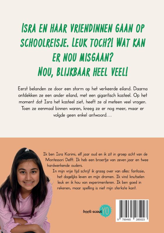 Isra en haar vriendinnen gaan op schoolreisje. Leuk toch?! Wat kan er nou misgaan? Nou, blijkbaar heel veel! Eerst belanden ze door een storm op het verkeerde eiland. Daarna ontdekken ze een ander eiland, met een gigantisch kasteel. Op het moment dat Isra het kasteel ziet, heeft ze al meteen veel vragen. Toen ze eenmaal binnen waren, kreeg ze er nog meer, maar er volgde geen enkel antwoord…
