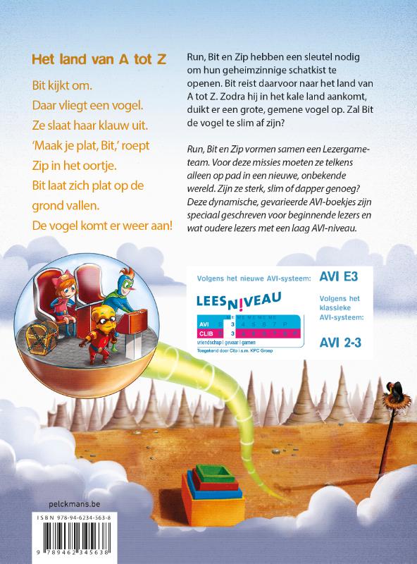 Voor beginnende lezers en oudere lezers met een laag AVI-niveau Samenstelling: 15 x 20,5 cm, 48 p. Auteurs(s): Marian van Gog & Eric Bouwens - Naar een educatief concept van Martine Ceyssens De leesboekjes van 'Lezergame' vormen een reeks van dynamische en hedendaagse verhalen. Run, Bit en Zip maken deel uit van de Lezergame-wereld, een virtuele wereld waar ze spannende avonturen beleven. Deze gevarieerde AVI-boekjes zijn speciaal geschreven voor beginnende lezers en wat oudere lezers met een laag AVI-niveau. In deze reeks krijgen Run, Bit en Zip telkens een opdracht die ze moeten voltooien. Maar voor deze missie moeten ze telkens alleen op pad in een nieuwe, onbekende game-wereld. Zijn ze wel sterk, slim of dapper genoeg? Wat maakt deze AVI-boekjes uniek? - Uitzonderlijke stapsgewijze opbouw, volgens de nieuwste inzichten in de didactiek van het leesonderwijs - Zeer gevarieerde bladspiegel, met strippagina's en tekstballonnen - Uitdagende verhalen, zodat de boekjes ondanks het lage AVI-niveau vol spanning door (oudere) lezers gelezen worden - Gevarieerde verhaalwereld in digitale context Nieuwsgierig naar de educatieve games? Gratis demoversie: https://sensotec.be/product/lezergame/