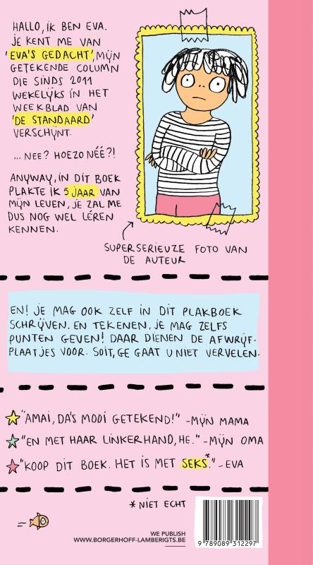 Gedachten zijn vrij. Zeker die van de illustratrice Eva Mouton. Ze dartelen, ravotten, vallen, staan weer op, en ze snijden. Ze snijden diep, ze snijden hout. Ze tonen ons wie we zijn. Me too, moet Eva Mouton gedacht hebben, want na Augustinus, Schopenhauer, Nietzsche en Wolinski bundelt nu ook zij haar gedachten, en wel die van de afgelopen vijf jaar. Haar autobiografisch neergetekende gedachten verschenen en verschijnen wekelijks in De Standaard Weekblad. Allen verdwalen wij een beetje in de wereld, vanaf nu kan het ook in dit speels vormgegeven lustrumboek.