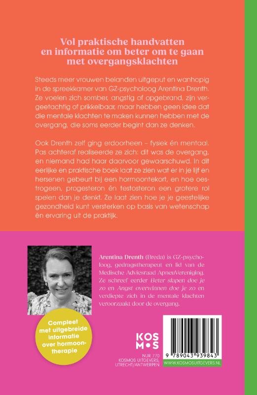 Het ligt niet aan jou, het is de overgang van Arentina Drenth laat zien hoe de overgang niet alleen fysieke, maar ook mentale uitdagingen met zich meebrengt. Veel vrouwen kampen met somberheid, angst, boosheid of burn-outklachten zonder te weten dat hormonen hierbij een grote rol spelen. Arentina Drenth, GZ-psycholoog, helpt vrouwen inzicht te krijgen in de invloed van oestrogeen, progesteron én testosteron op hun geestelijke gezondheid. In dit boek vind je: Uitleg over de impact van hormonen op je mentale welzijn Handvatten om psychische klachten te verlichten, met of zonder hormoonsuppletie Praktische adviezen voor een gezonde geest in de overgang Een onmisbaar boek voor vrouwen die grip willen krijgen op hun mentale gezondheid tijdens de overgang.