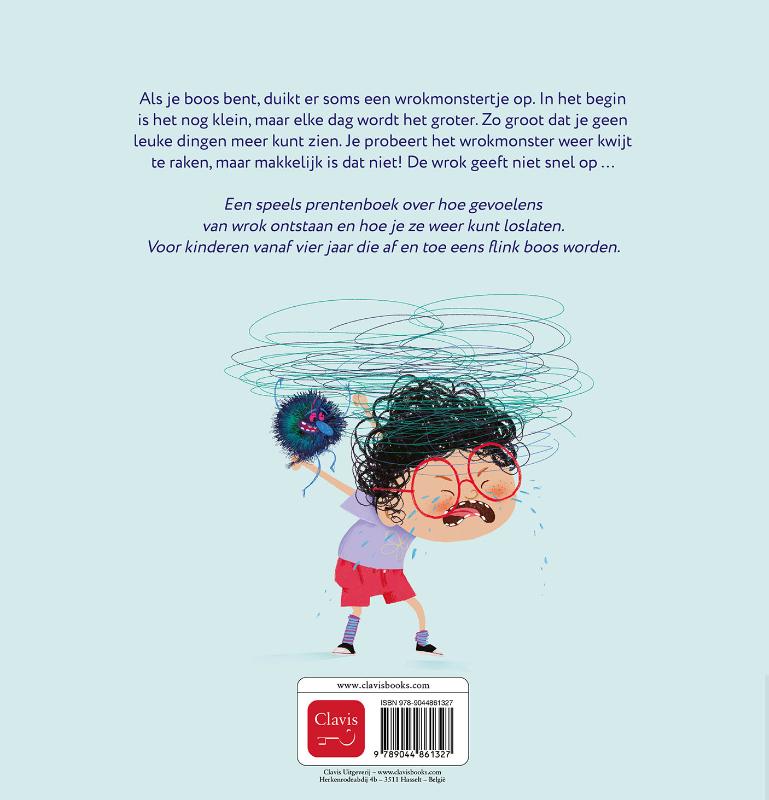 Als je boos bent, duikt er soms een wrokmonstertje op. In het begin is het nog klein, maar elke dag wordt het groter. Zo groot dat je geen leuke dingen meer kunt zien. Je probeert het wrokmonster weer kwijt te raken, maar makkelijk is dat niet! De wrok geeft niet snel op … Een speels prentenboek over hoe gevoelens van wrok ontstaan en hoe je ze weer kunt loslaten. Voor kinderen vanaf vier jaar die af en toe eens flink boos worden.