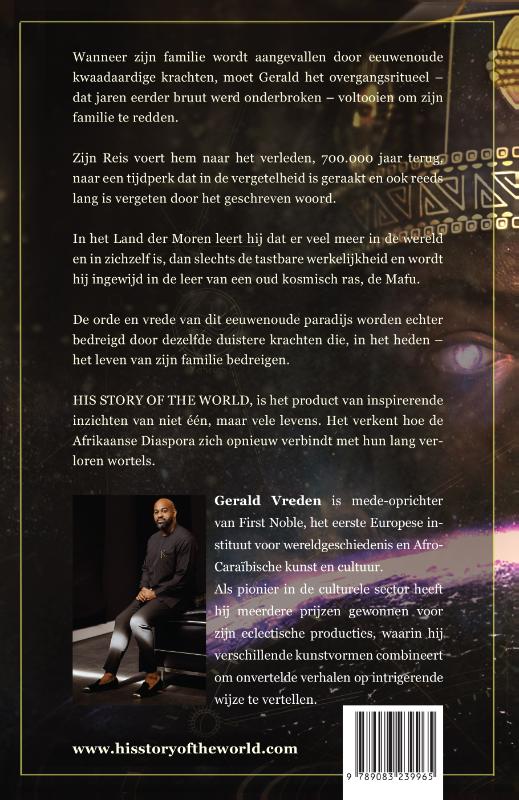 His Story of the World: De Eerste Schepper volgt Gerald, een man die vastbesloten is een normaal leven te leiden. Dat leven raakt uit balans wanneer fragmenten van een oude Afro-Caribische scheppingsmythe zich aan hem opdringen. Symbolen verschijnen. Echo’s keren terug. Waar ooit stilte was, beginnen waarheden te fluisteren. Wat eerst toeval lijkt, wordt al snel onmogelijk te negeren. Gerald en zijn familie beseffen dat zij worden opgejaagd door onbekende wezens met verborgen motieven. Zonder te weten wie hen achtervolgt of waarom, worden zij gedwongen zichzelf te beschermen vanuit instinct in plaats van kennis. Zelfs plekken die ooit veilig waren, bieden geen houvast meer. Wanneer de initiatie zich binnen de familie aandient, raakt die hen niet allemaal tegelijk. Gerald ziet hoe zijn broers en zussen als eersten veranderen, terwijl hij zelf onaangeraakt blijft. In zijn zoektocht naar antwoorden wordt hij gewaarschuwd: de initiatie laat zich niet afdwingen. Wie de drempel te vroeg overschrijdt, riskeert meer te vernietigen dan te redden. Gaandeweg ontdekt Gerald een waarheid die hij altijd heeft gevreesd. De mythe is niet symbolisch of ver weg, maar direct verbonden aan zijn bloedlijn. Zijn familie draagt een verborgen erfenis, geworteld in Afrikaanse en Caribische scheppingsmythen die ouder zijn dan de tijd, kennis die doelbewust werd uitgewist om de wereld te vormen zoals die nu is. Wanneer vergeten wachters ontwaken en oeroude krachten in beweging komen, beseft Gerald dat herinneren een daad van verzet is. Elke waarheid die aan het licht komt, vergroot het gevaar en brengt zijn familie dichter bij machten die geen onderscheid maken tussen kennis en bloed. Terwijl alles wat hij dacht te weten instort, moet Gerald kiezen tussen de kwetsbare veiligheid van zijn oude leven en een nalatenschap die zijn familie kan redden of de toekomst voorgoed kan vernietigen. De Eerste Schepper opent een Afrofuturistische saga waarin afkomst lot wordt, legende bewijs, en het voortbestaan van één familie bepaalt welke vorm van mensheid mag blijven bestaan.