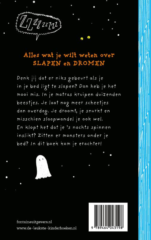 Wat gebeurt er allemaal met je als je slaapt? Hoe lang kun je zonder slaap? Waarom vergeet je vaak je dromen? Hoe slapen dieren? En welke beestjes kruipen er ’s nachts in je bed? Deze en nog vele andere vragen worden beantwoord door wetenschapsjournalist Mark Traa. In deze nieuwe en toegankelijke non-fictieserie voor kinderen vanaf 7 jaar wordt kort en bondig steeds één onderwerp uitgelicht. Met sprekende zwart-witillustraties van Wendy Panders.